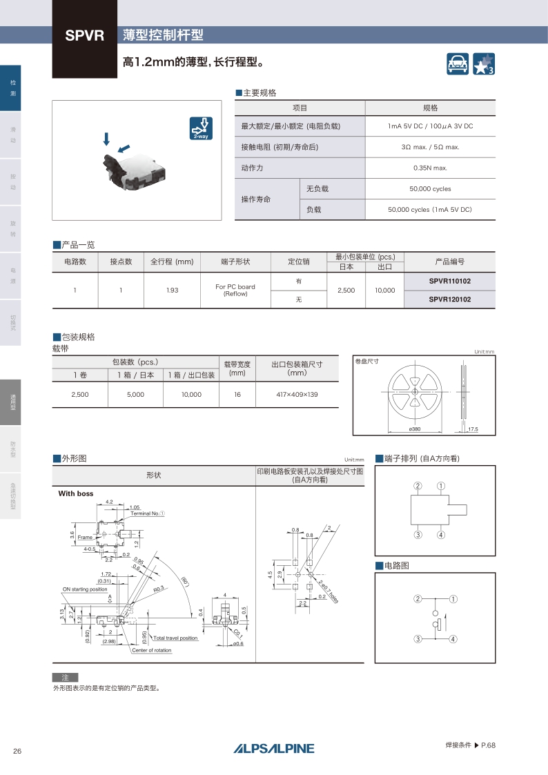 SPVR120102 照片 1 1 For PC board (Reflow) 0.35N max. 1.93 3.6×4.2×1.2mm