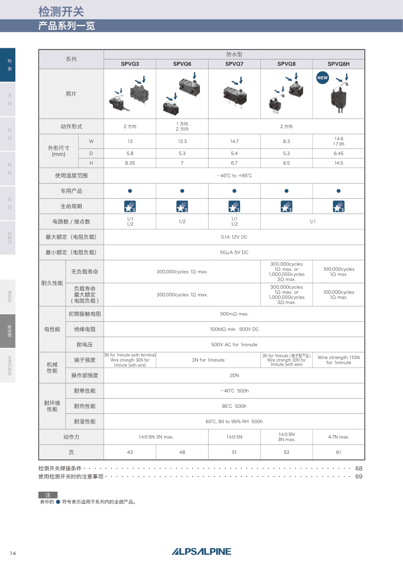 采购:SPVQ8H系列——ALPS检测开关
