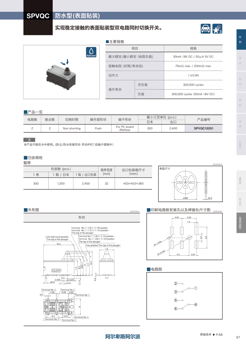 采购:SPVQC10201——ALPS检测开关