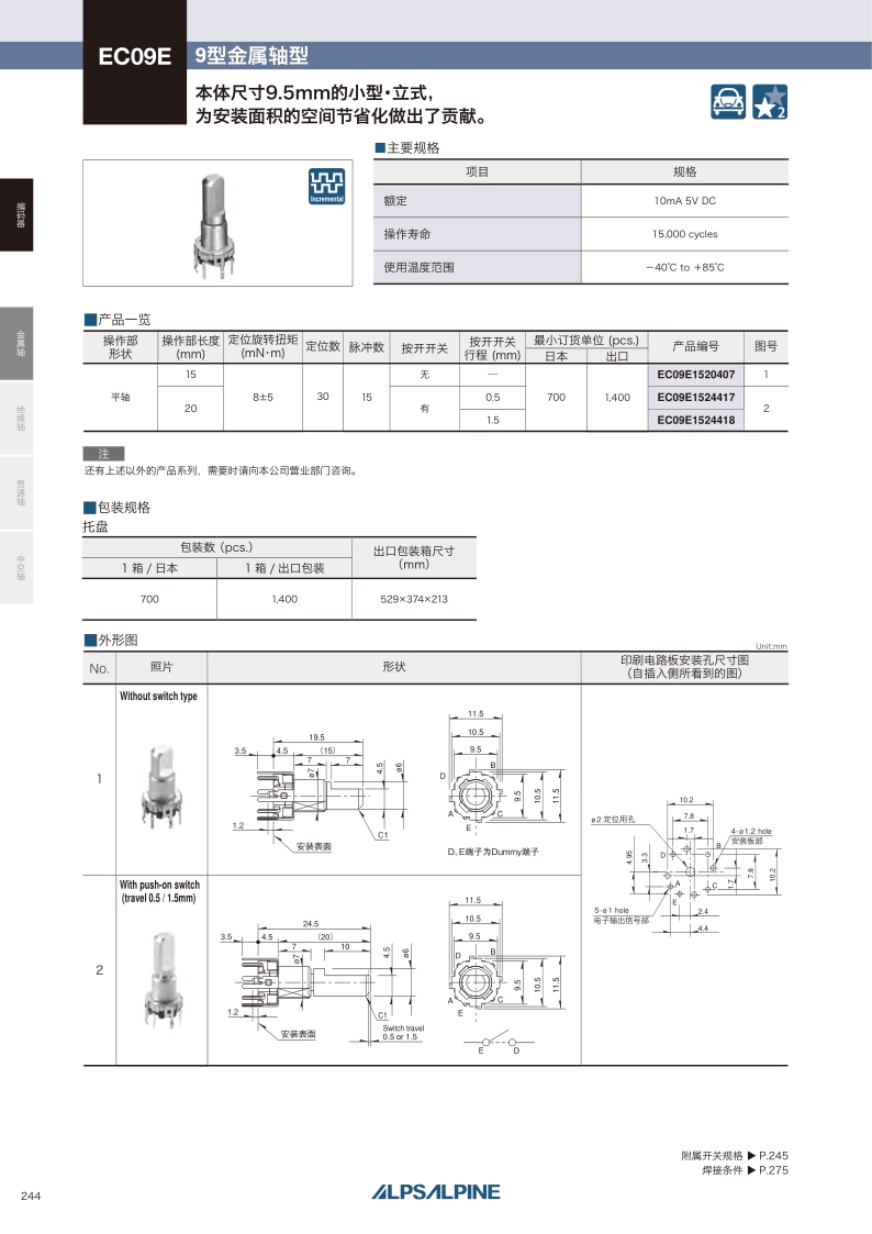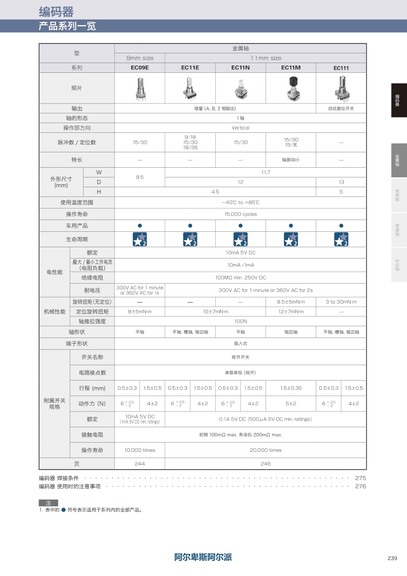 采购:EC09E系列——ALPS金属轴编码器