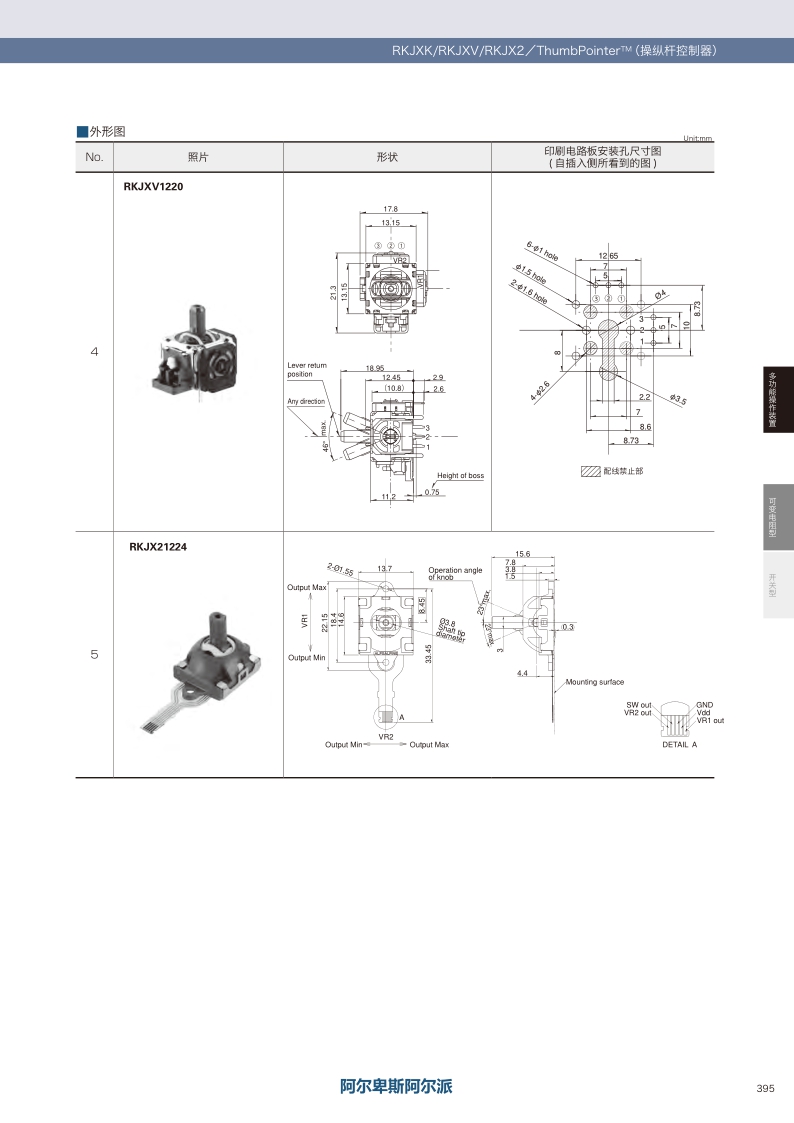 采购:RKJXV系列——ALPS摇杆多功能操作装置