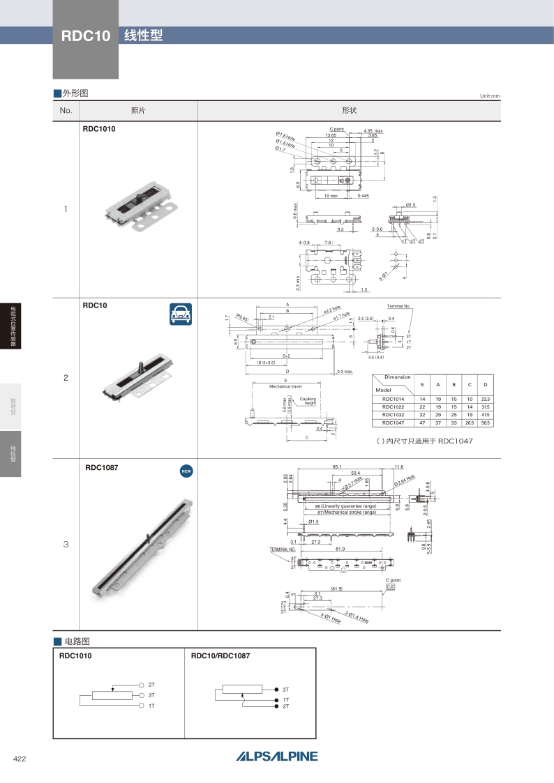 RDC10系列——ALPS电阻式位置传感器(线性型)