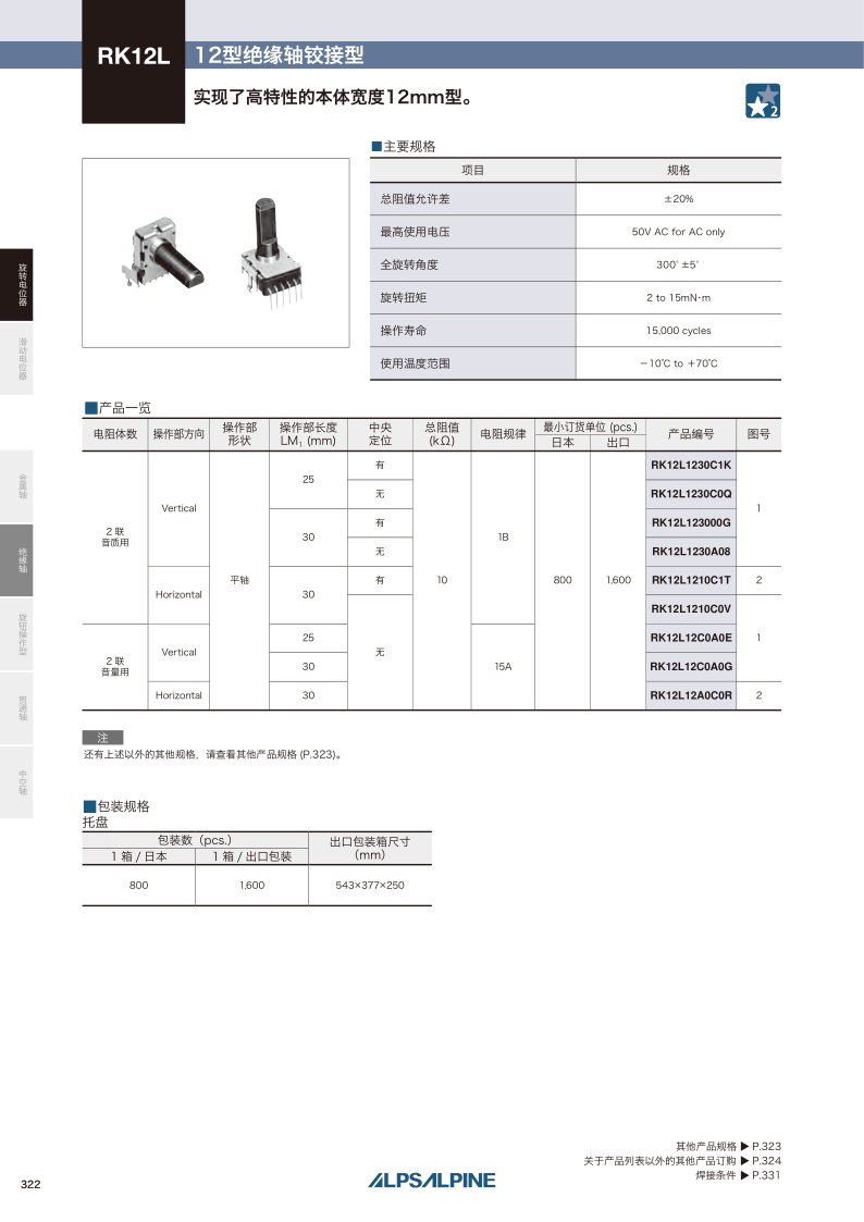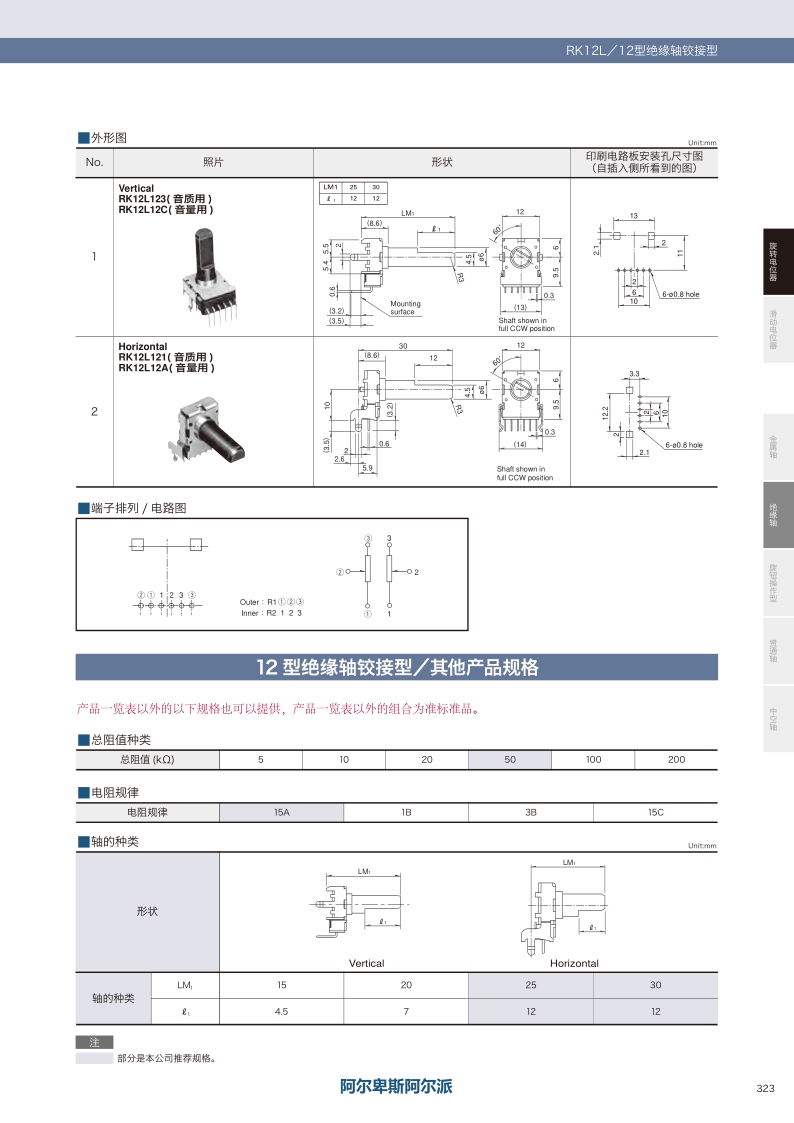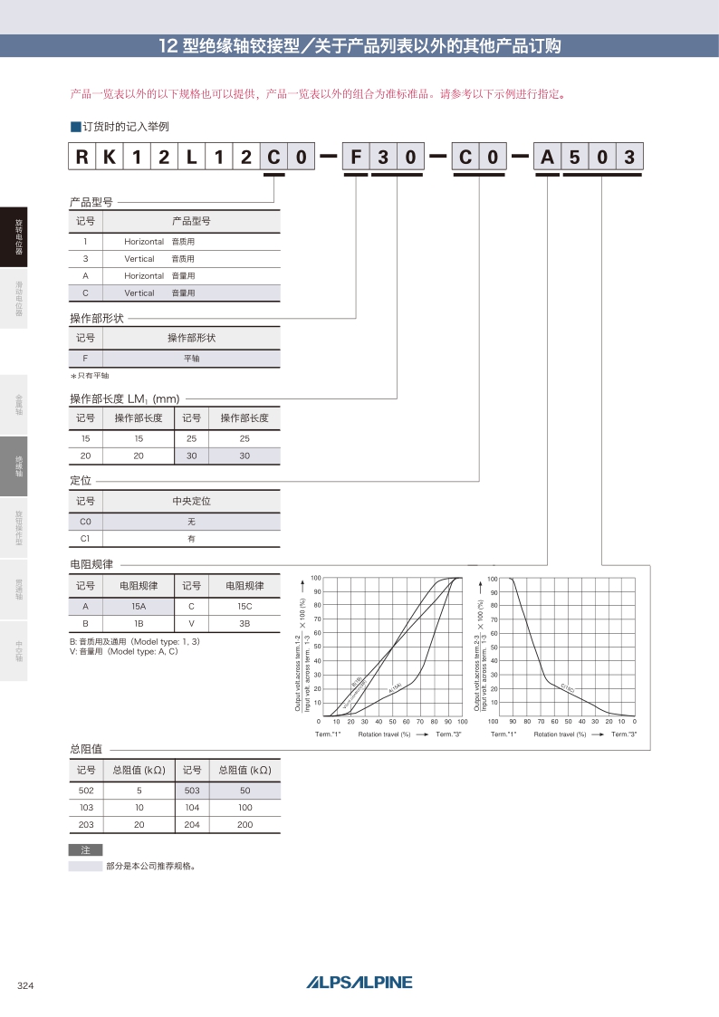 RK12L系列——ALPS绝缘轴电位器