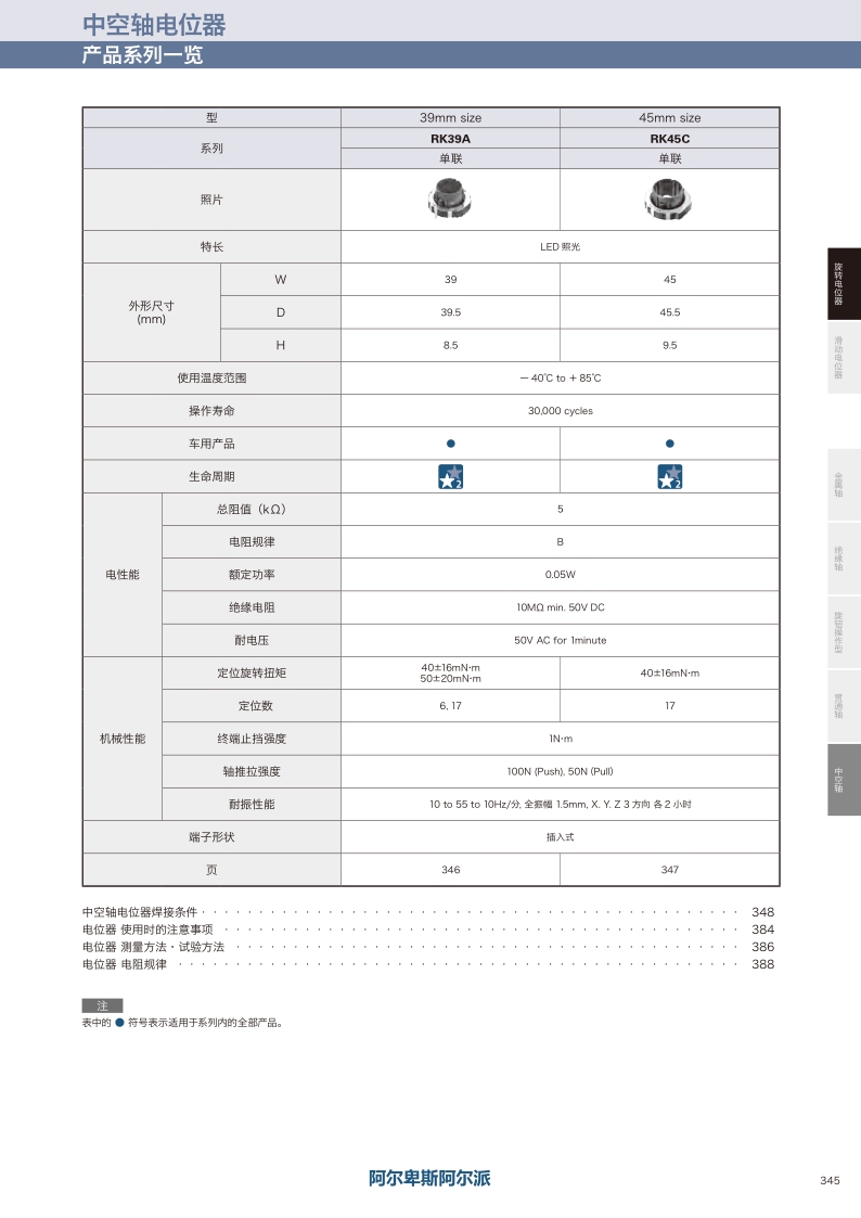 RK39A系列——ALPS中空轴电位器
