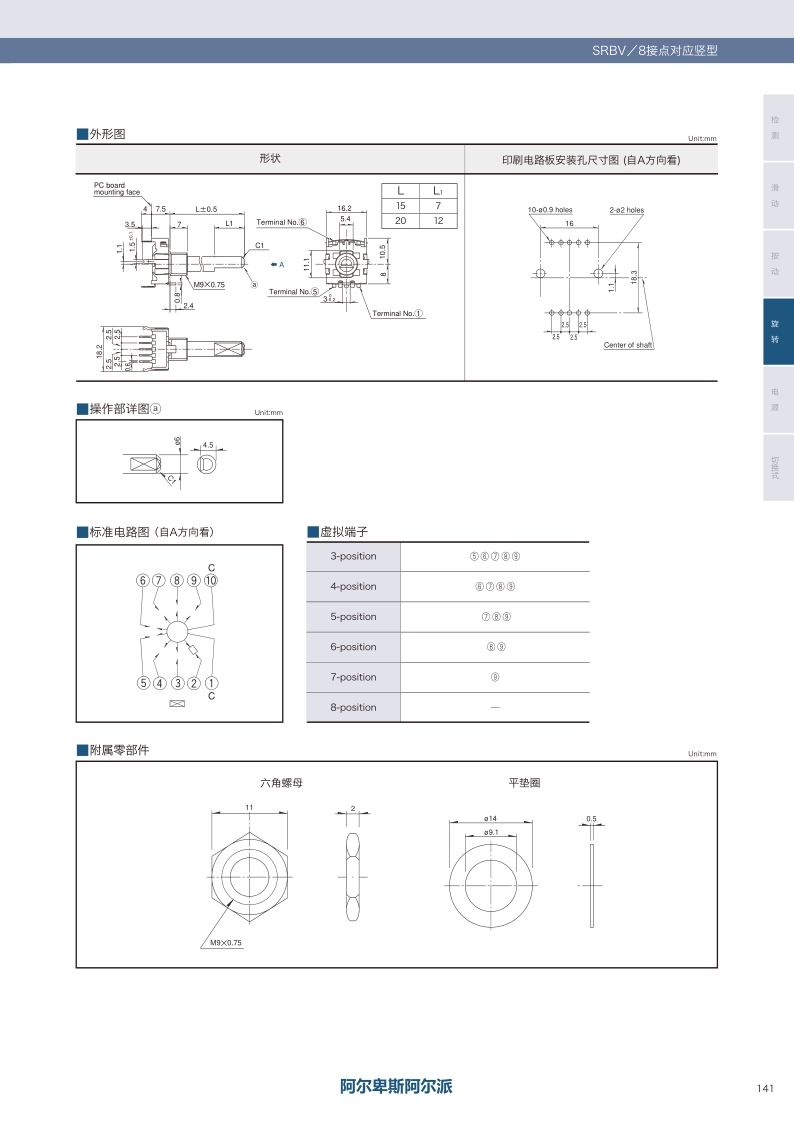 SRBV150901 照片 1 5 30±3° Non shorting 30±15mN·m Flat L: 20mm 16.2×18.5×7.5mm