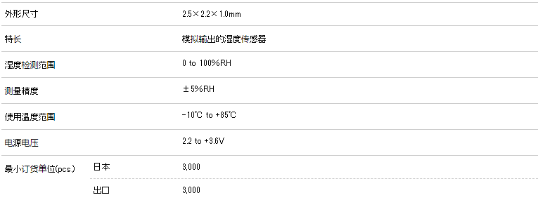 小型湿度传感器(SMD)HSHCA系列小型封装,测量精确,最大湿度测量范围达到100%。型:表面贴装 ・ 安装方法:表面贴装。
