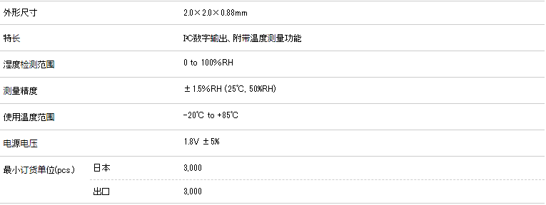 小型湿度传感器(SMD)HSHCA系列小型封装,测量精确,最大湿度测量范围达到100%。型:表面贴装 ・ 安装方法:表面贴装。