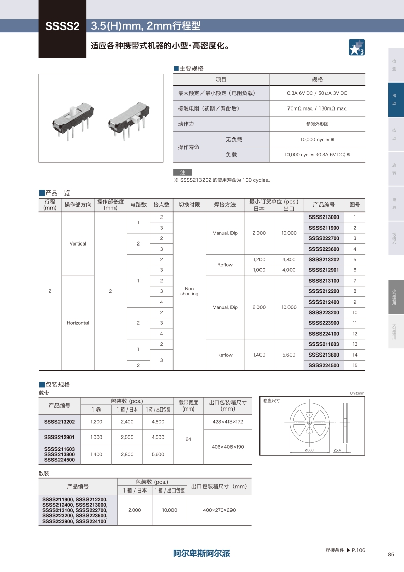 采购:SSSS2系列——ALPS滑动开关