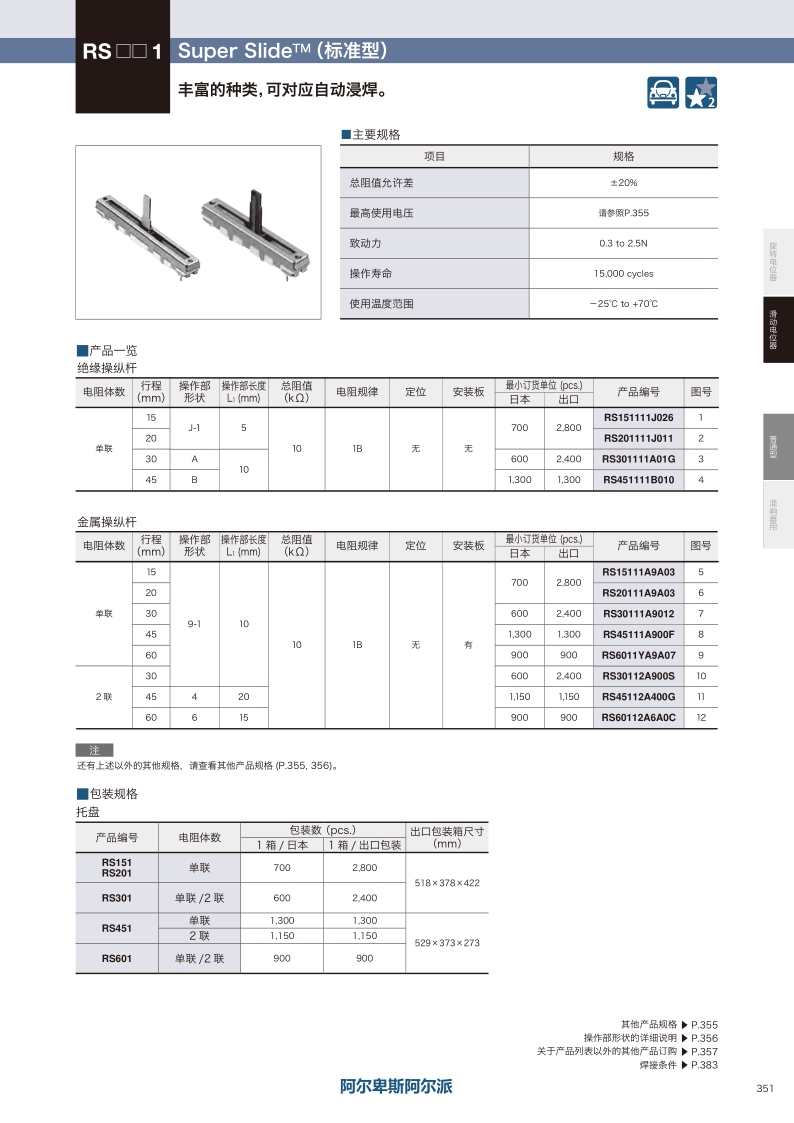 RS601系列——ALPS滑动电位器