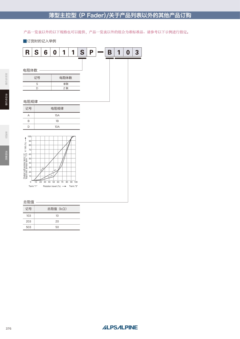 采购:RS6011DP/RS6011SP系列——ALPS滑动电位器