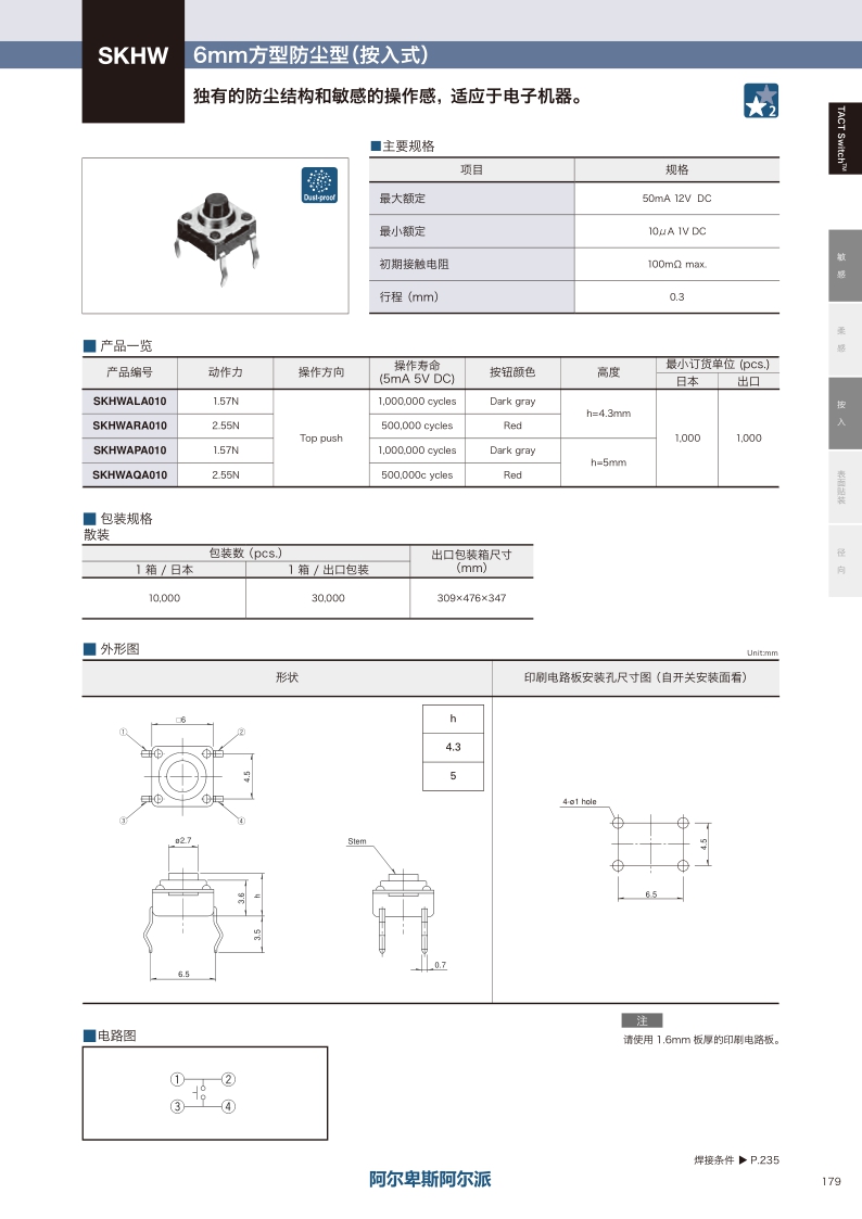 采购:SKHW系列——ALPS轻触开关
