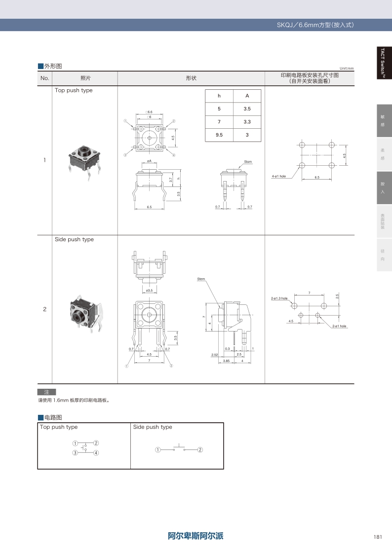 采购:SKQJ系列——ALPS轻触开关