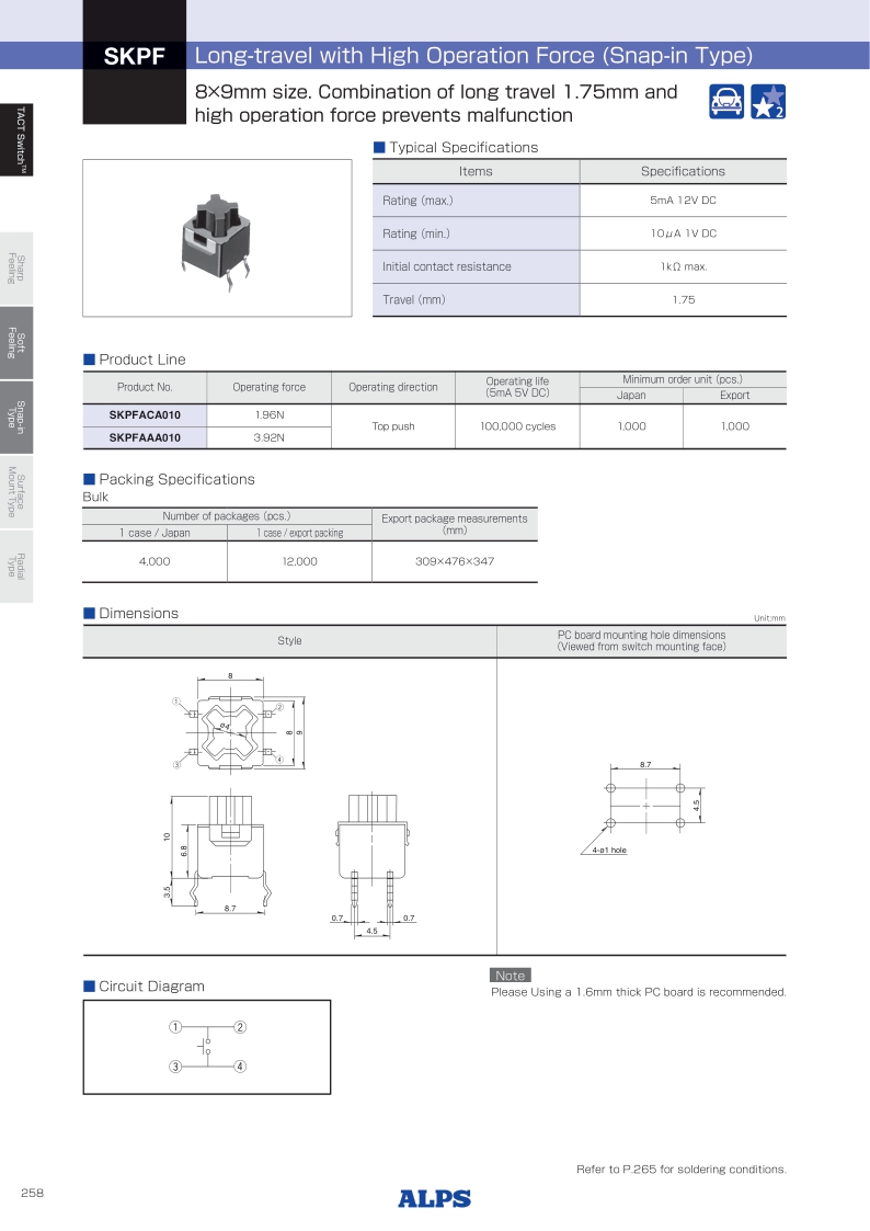 SKPF系列——ALPS轻触开关
