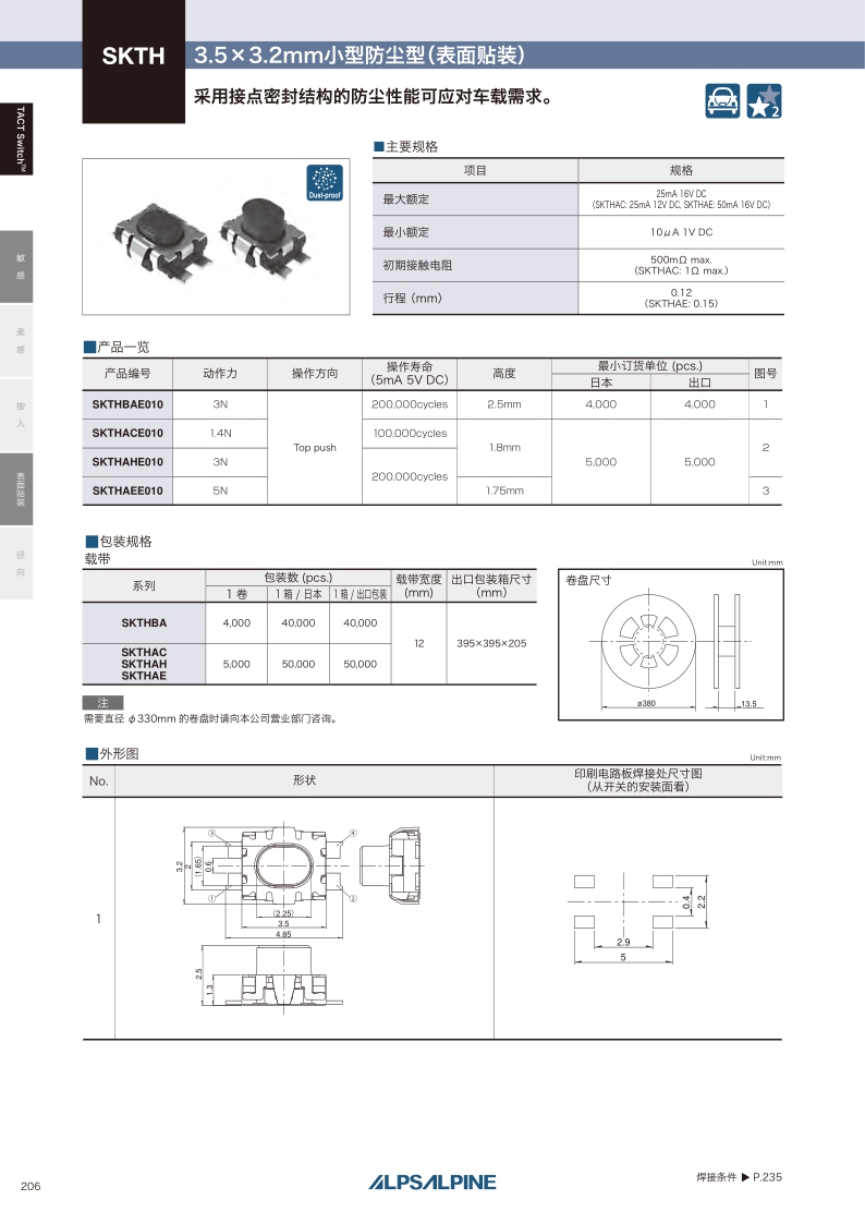 SKTH系列——ALPS轻触开关