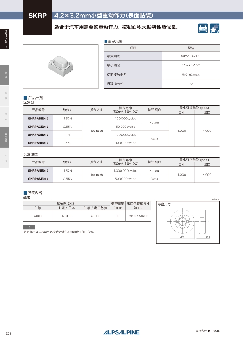 采购:SKRP系列——ALPS轻触开关