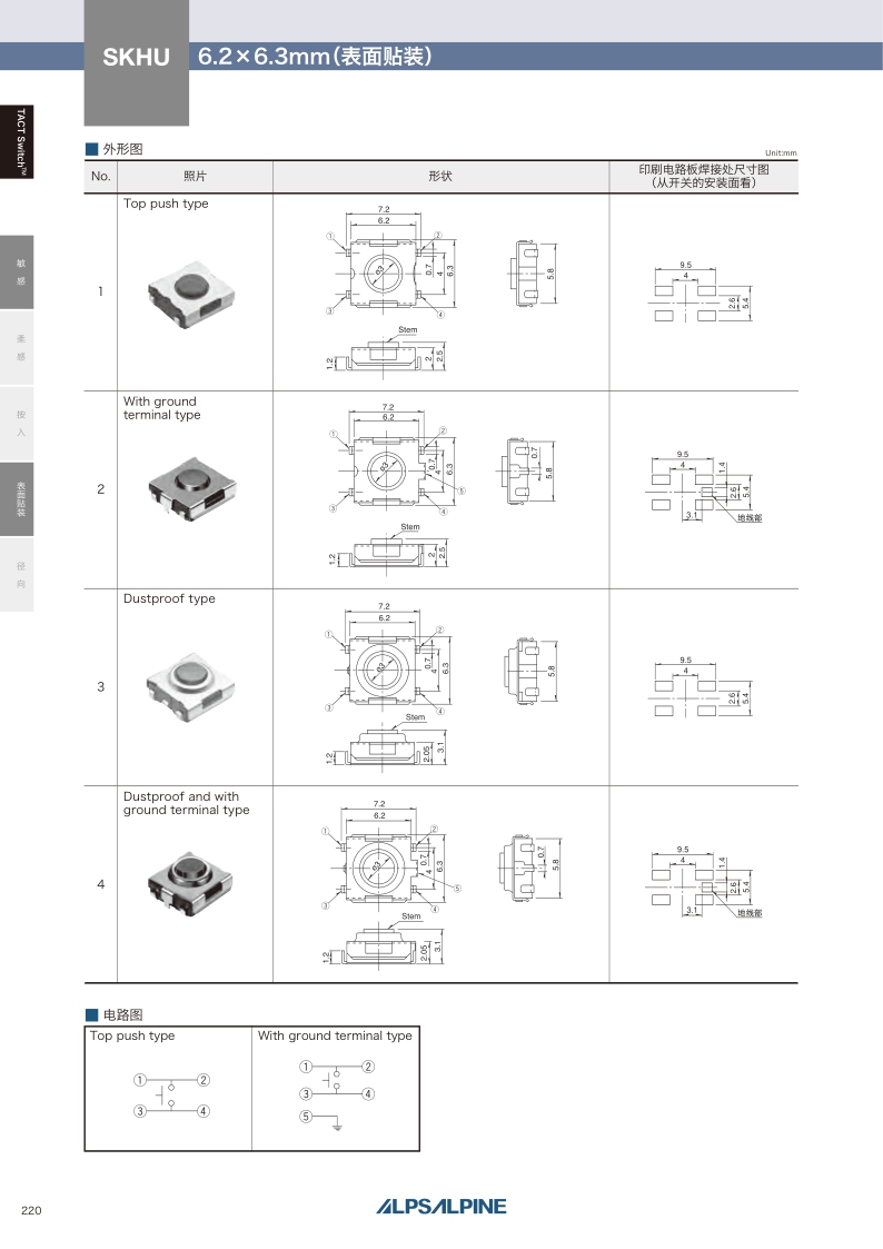 SKHU系列——ALPS轻触开关