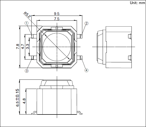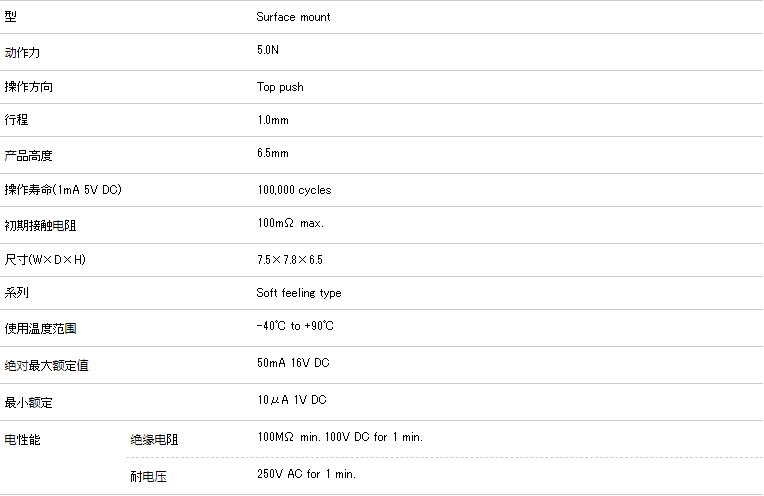 7.5×7.8mm重动作力低接触电阻型(表面贴装)SKPR系列型号:SKPRAAE010