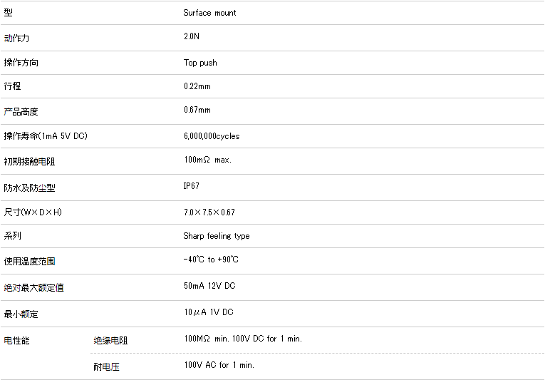 5.9×4.0mm 薄型长寿命、附带凸起的型(表面贴装)SKUA系列型号:SKUAAAE010
