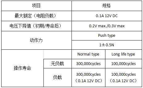 1、3mm移动量的卡夹型接点结构,在微小电流领域发挥出了较高的可靠性。